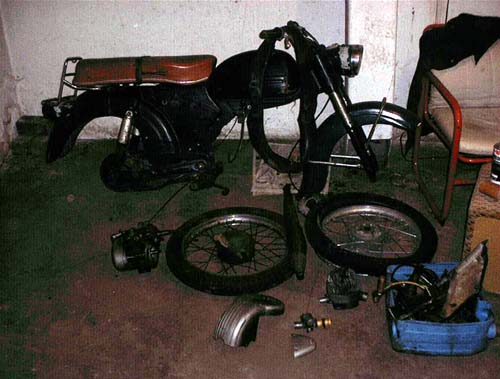 van de gehele bromfiets ,het las- en slijpwerk vond ie maar niets