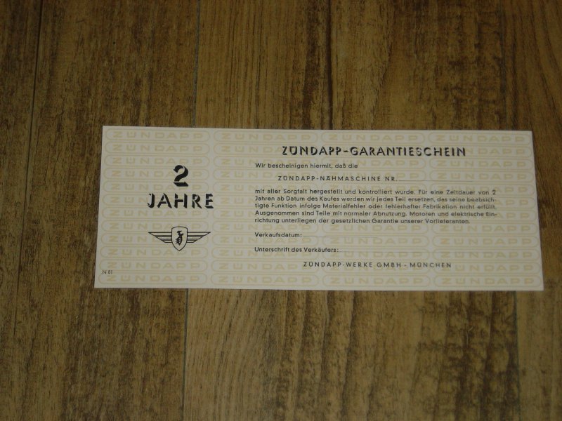Nähmaschinen - D - Garantieschein